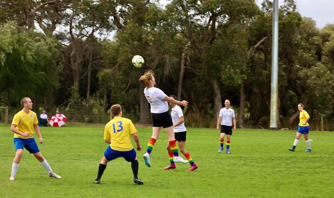 Perth Pride Football embodies community and inclusion in football, providing LGBTQIA+ people in Perth with an all-gender social football and social space.